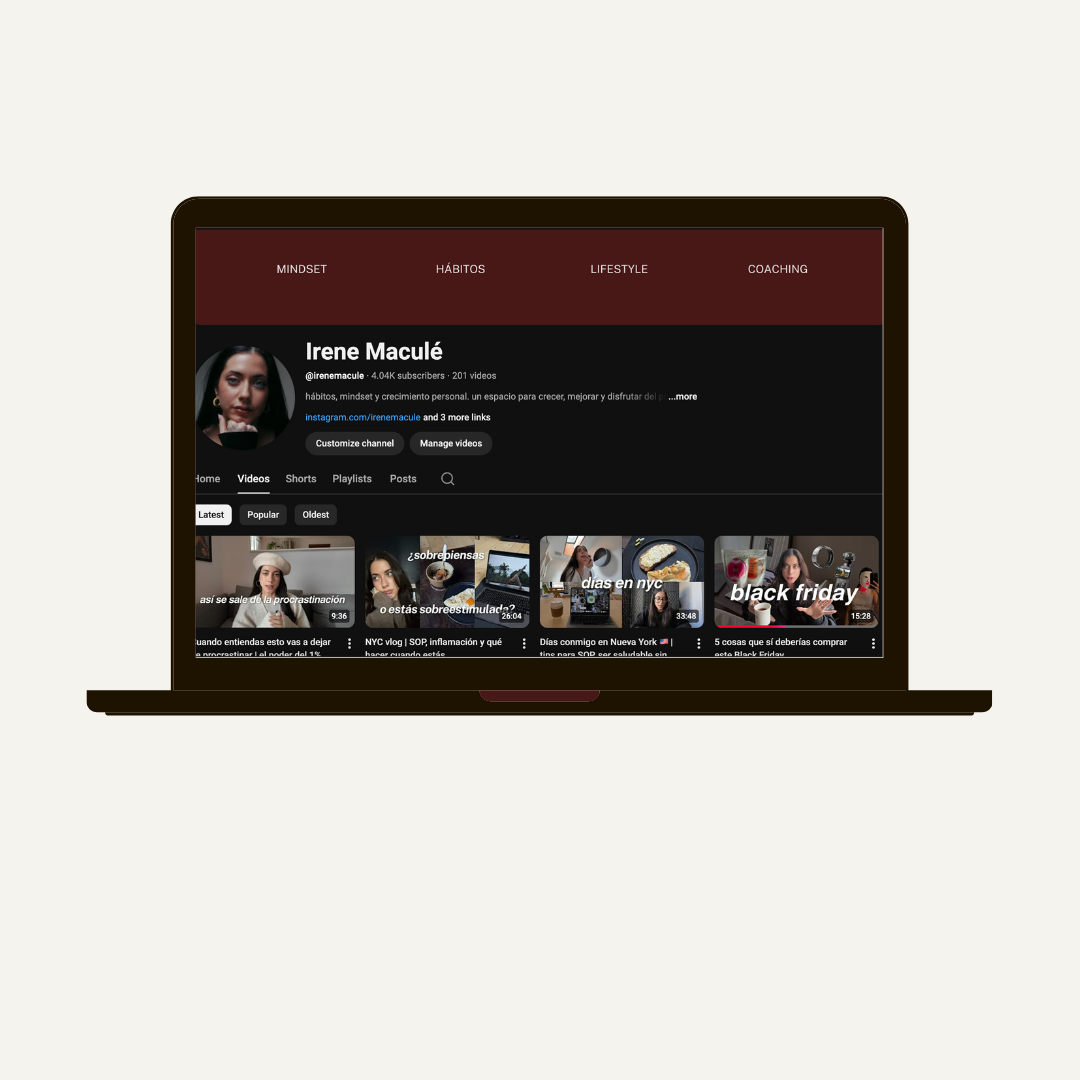 Te hablo de hábitos, mindset y crecimiento personal. Youtube para mi es un espacio donde crecer, mejorar y disfrutar del proceso juntas.